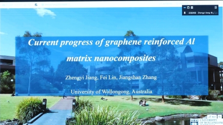 论坛特邀澳大利亚沃隆港大学(UOW)姜正义教授做了“石墨烯增强铝基纳米复合材料前沿研究”(Current Progress of graphene reinforced Al matrix nanocomposites)的主题报告。报告内容聚焦于陶瓷纳米颗粒与石墨烯协同增强铝基纳米复合材料的制备与表征,通过低温球磨法和溶剂热法合成碳化硅(SiC)-石墨烯核壳纳米颗粒,利用高导热石墨烯片包裹碳化硅颗粒,实现搅拌铸造过程从“颗粒推移”转变为“颗粒吞噬”凝固机制创新,实现复合材料拉伸强度与塑性的协同提升;通过原位湿磨工艺制备碳化硅-石墨烯核壳纳米颗粒,基于该增强相开发出高耐磨性铝基复合材料。研究成果为揭示铝基复合材料的增强机理、设计兼具优异力学性能与摩擦学性能的新型复合材料提供理论参考与技术指导。报告为在场师生提供了更广阔的学术视野,让参会人员对纳米复合材料领域有了更深入了解,激发了现场师生对该领域研究的兴趣和热情。