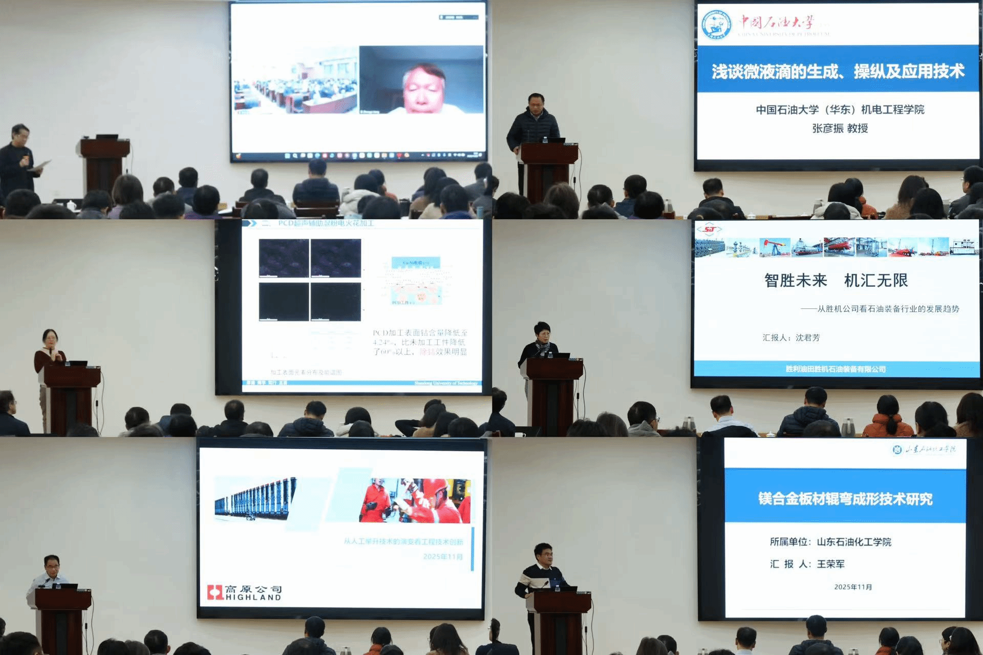 澳大利亚伍伦贡大学姜正义教授、中国石油大学(华东)张彦振教授、山东理工大学李丽教授、学院王荣军教授围绕先进装备制造前沿技术成果展开深度解析:从陶瓷纳米颗粒与石墨烯协同增强铝基纳米复合材料的制备工艺突破,到微液滴生成与操纵新技术在增材制造、印刷电子等领域的创新应用;从难加工材料电火花复合加工的机理探索与工艺优化,到镁合金板材辊弯成形技术中的损伤参数标定、回弹控制及微观组织研究,一系列学术报告为行业技术升级提供了崭新视角。