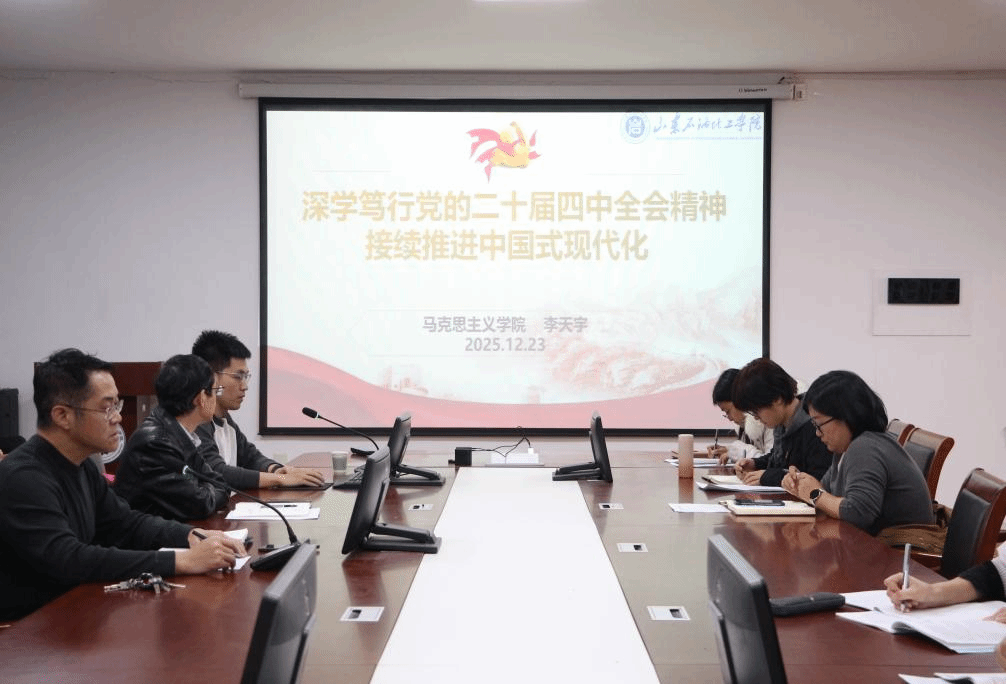 为深入学习领会党的二十届四中全会精神,统一思想、凝聚共识,12月23日下午,学院特邀马克思主义学院李天宇副教授作专题宣讲,学院全体教师参加学习。