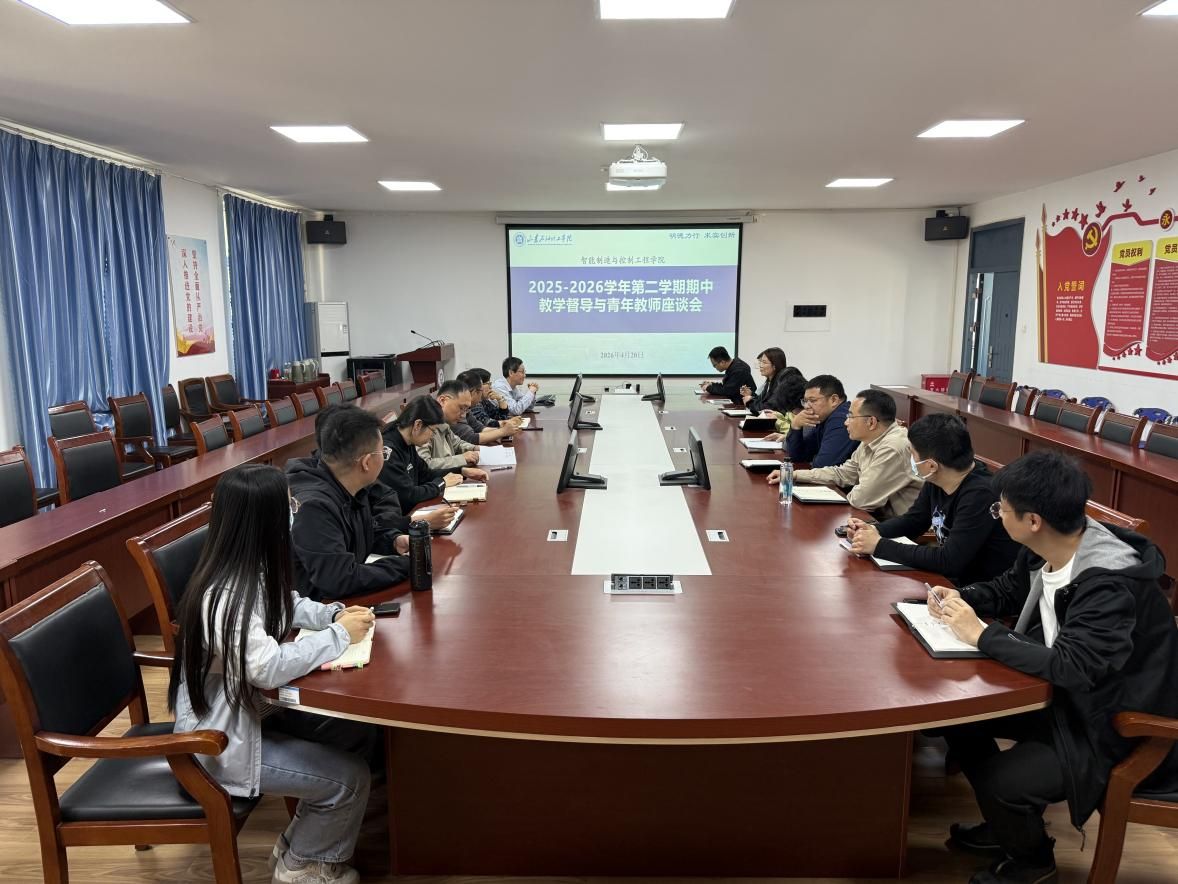 为扎实推进2025-2026学年第二学期期中教学检查工作,精准把脉教学运行现状,助力青年教师成长成才,4月20日下午16:10,我院在自动化馆南楼237会议室召开期中教学督导与青年教师座谈会。学院分管教学副院长刘善增,教学督导组成员代表潘大伟、刘庆、曹惠、何进及学院青年教师代表参会,会议围绕教学提质、产教融合、管理保障等核心议题深入交流、凝聚共识。