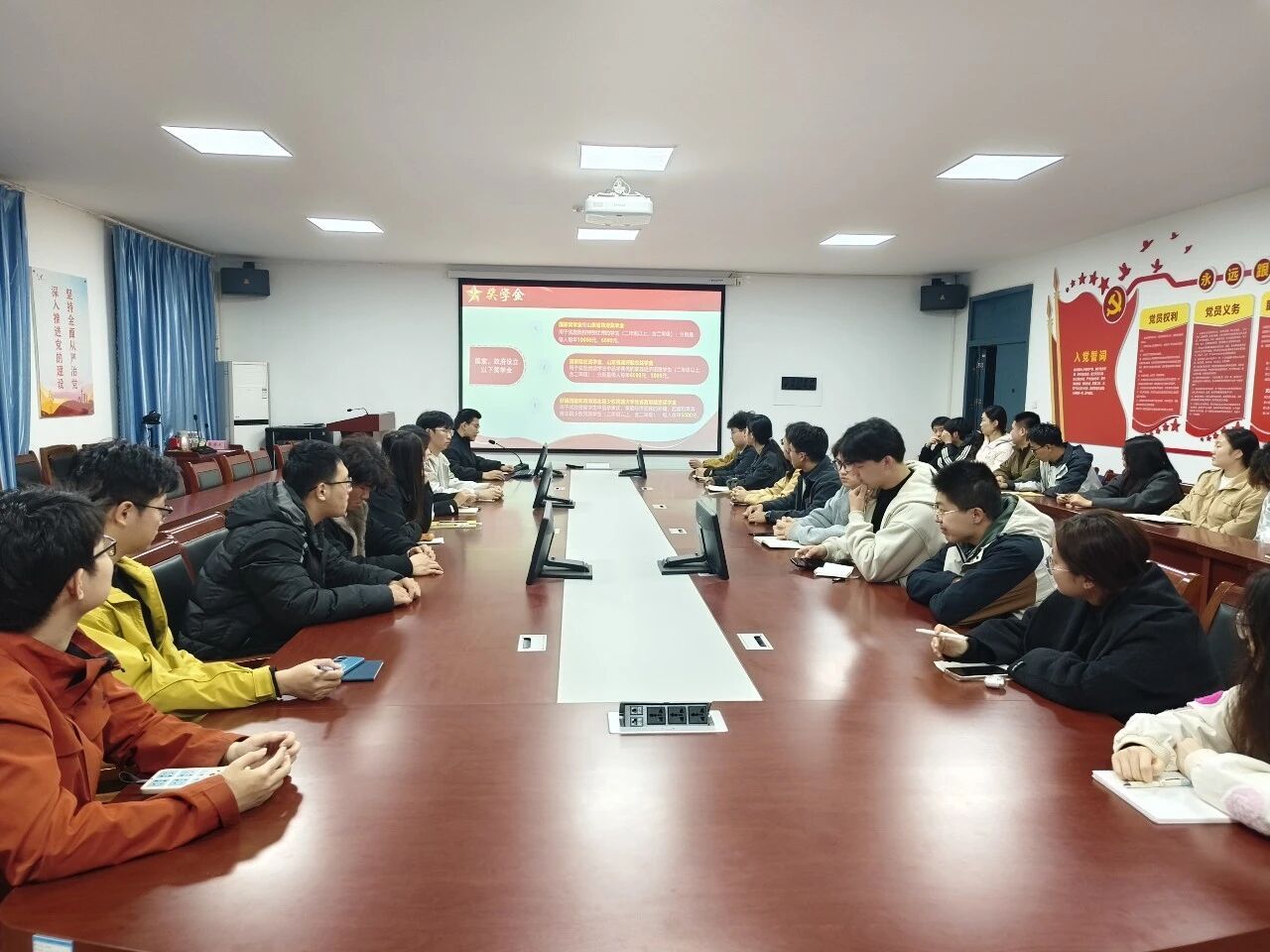 李长锐同志以自身成长为蓝本,分享学习经验与工作心得。从专业课程的高效学习窍门、理论知识的扎实掌握,到学生工作的实践感悟、入党路上的信念锤炼,他毫无保留地向同学们传递着“勤学善思、笃行不怠”的成长态度。现场互动环节中,同学们针对学业困惑、思想提升等问题积极提问,李长锐同志耐心细致地为大家解答,现场研讨氛围热烈,进一步激发了同学们深耕专业、砥砺前行的热情。