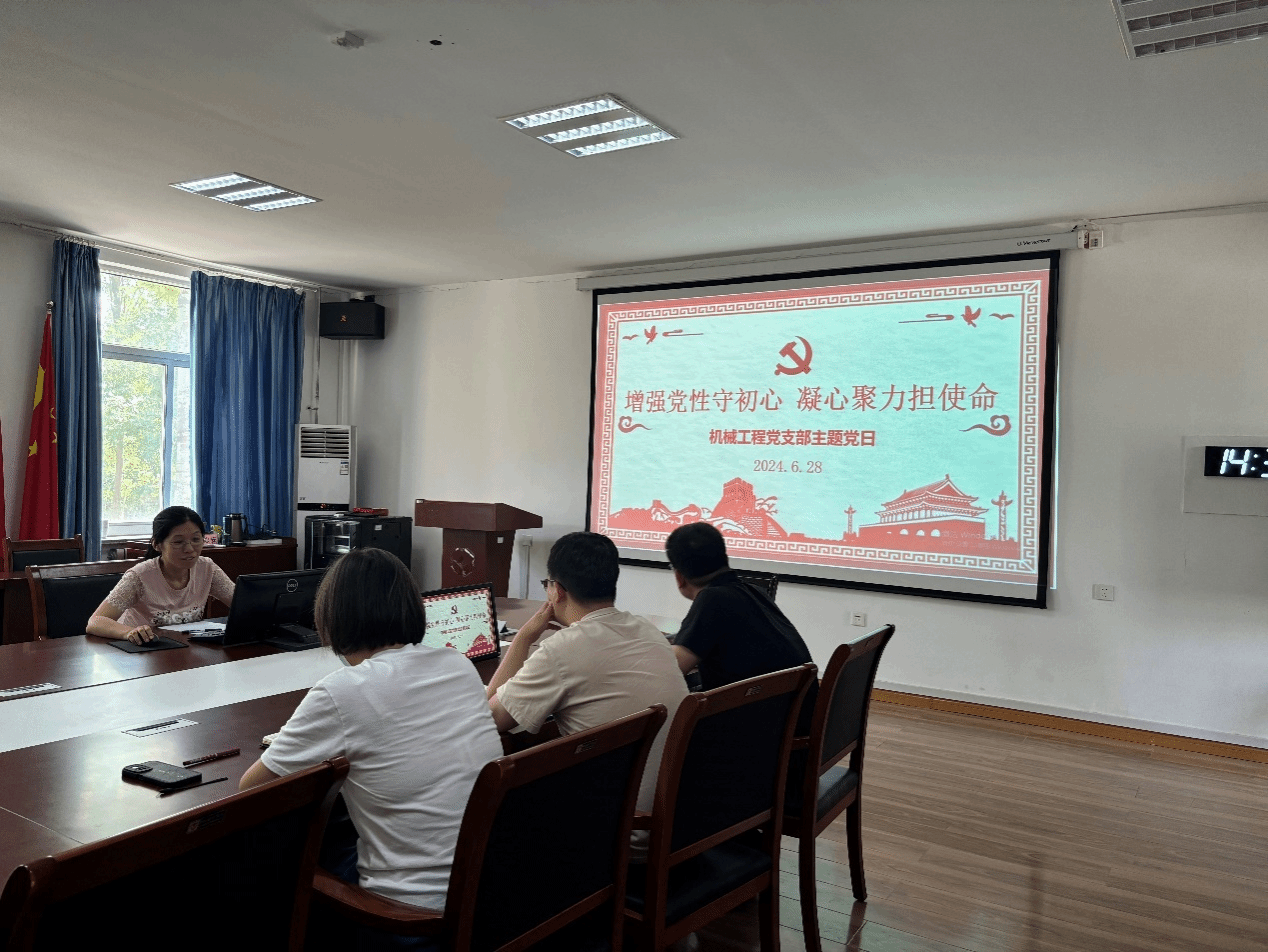 为深入学习贯彻习近平总书记关于党纪学习教育的重要讲话和重要指示精神,推动党员学纪、知纪、明纪、守纪,6月28日,机械工程党支部开展“增强党性守初心,凝心聚力担使命”主题党日活动。