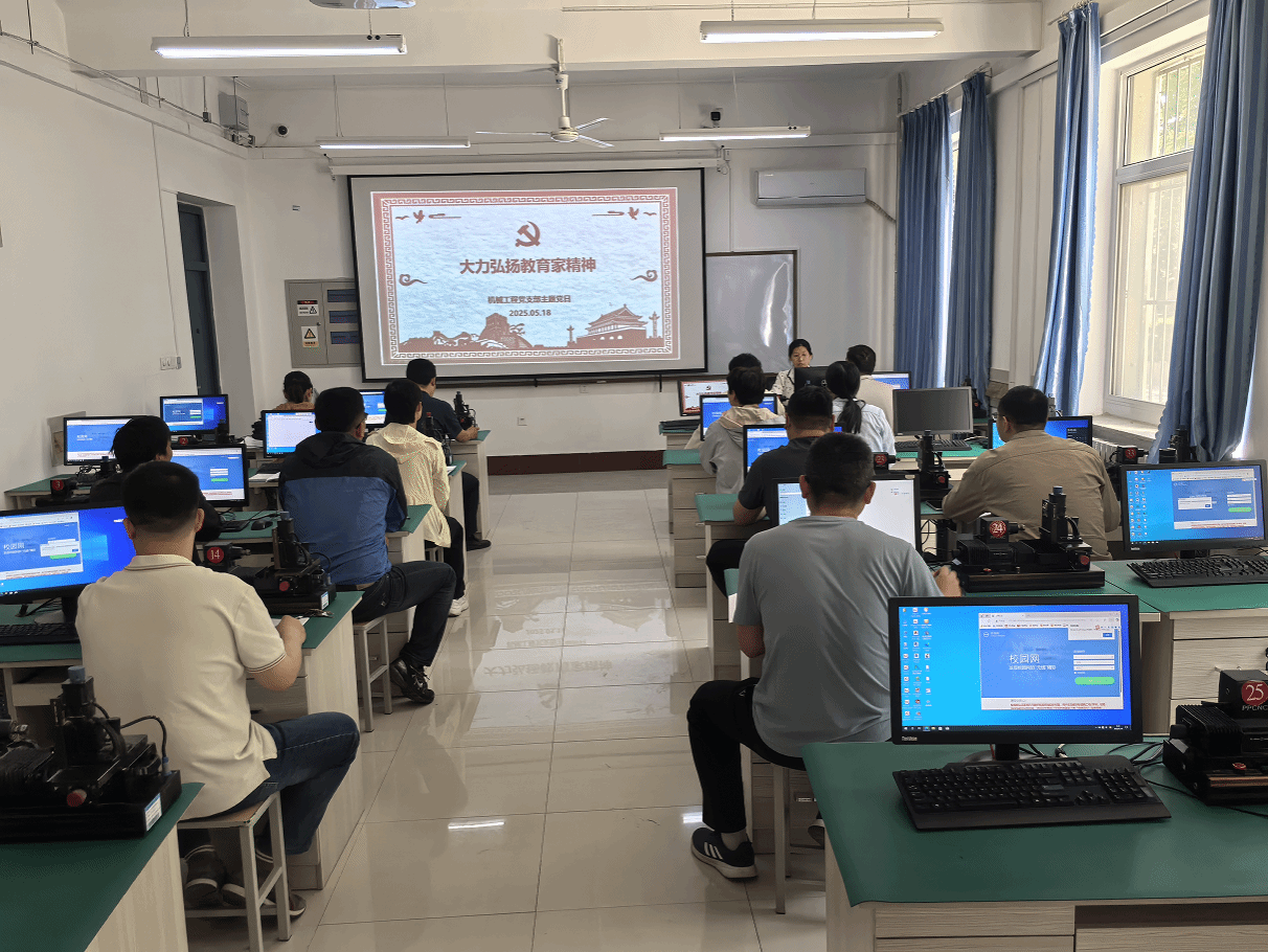 2025年5月18日,机械工程党支部在智控学院125实验室、215实验室开展“大力弘扬教育家精神”主题党日活动,会议分别由支部书记刘晓和支部副书记郭丽娟主持,支部全体党员参加此次主题党日活动。